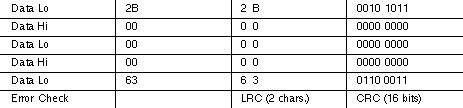 For example, the value 63 hex is sent as one eight-bit byte in RTU